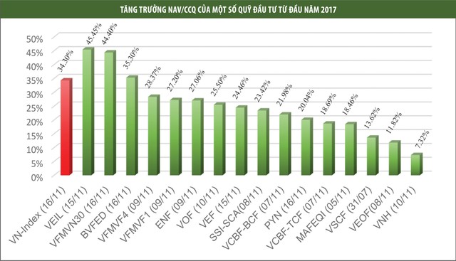 Từ đầu năm đến giữa tháng 11, nhiều quỹ đầu tư đạt mức tăng trưởng NAV/CCQ trên 20%, một số quỹ đạt mức tăng trên 40%.