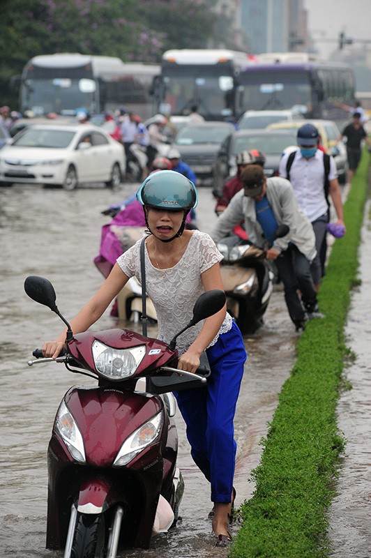 (ĐTCK) Cơn mưa lớn kéo dài nhiều giờ liền suốt đêm qua khiến nhiều nơi ở Hà Nội ngập sâu. Sáng nay (25/5), giao thông rối loạn, nhiều phương tiện chết máy giữa đường. (Dũng Minh thực hiện).