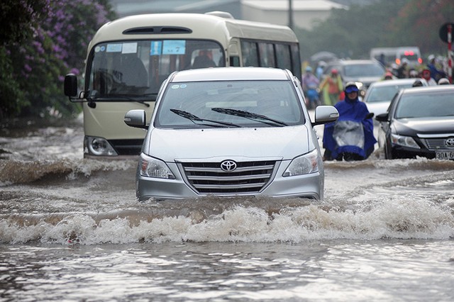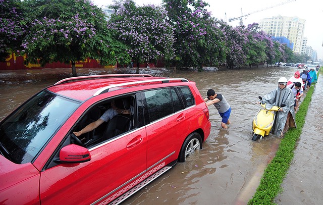 Nhiều xe ô tô “đuối nước” sau cơn mưa lớn tại Hà Nội