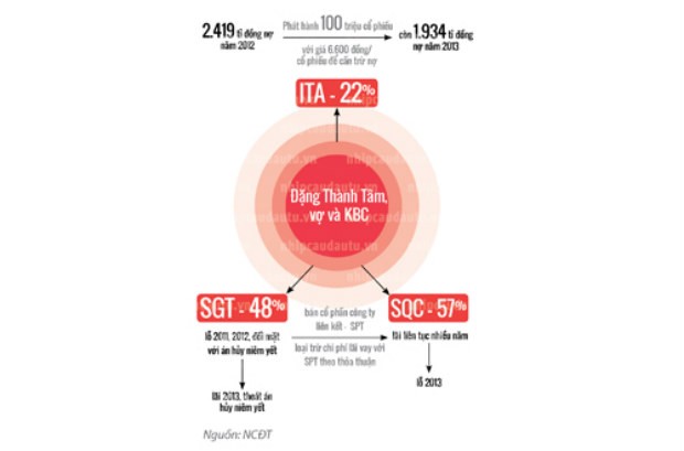 KBC và ITA là hai đầu tàu của Tập đoàn Đầu tư Sài Gòn (SGI) do ông Tâm nắm phần lớn cổ phần và cũng là gánh nặng lớn nhất của ông khi kinh tế khó khăn. Doanh thu của KBC và ITA giai đoạn 2010-2012 đã giảm mạnh qua mỗi năm, trong khi nợ lại tăng lên nhiều. Lãi vay là nguyên nhân chính ăn mòn lợi nhuận và khiến KBC lỗ lớn, trong khi năm trước đó lại có lãi. So với lợi nhuận gộp bán hàng năm 2012 của KBC, thì lãi vay lớn gấp 3 lần.