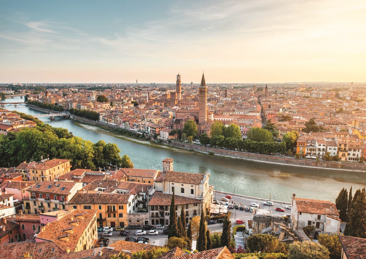 Trên đỉnh những ngọn núi cao, tuyết phủ trắng xóa. Khắp nơi trong thành phố, nắng vàng óng ánh nhuộm lên vạn vật. Trên cao, trời xanh lồng lộn, xanh như màu biển vùng Địa Trung Hải bao năm vẫn vậy. Verona đã đón tôi như thế.