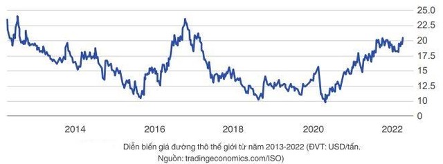 Theo dữ liệu của tradingeconomics.com về giá đường qua các năm, với mức tăng vào cuối tháng 3 và đầu tháng 4, mức giá đường thô thế giới đã đạt mức cao nhất kể từ năm 2017.