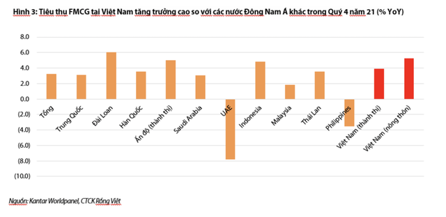 Theo Kantar World Panel, tiêu thụ hàng FMCG tại Việt Nam thuộc nhóm tăng trưởng cao so với các quốc gia khác trong khu vực Đông Nam Á trong quý 4/2021 - giai đoạn hậu giãn cách.
