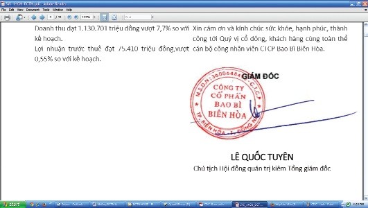 Tuy nhiên, đọc kỹ thông điệp này, có một điểm không chuyên nghiệp chút nào khi quanh con dấu của Công ty là 3 chức danh cùng có giá trị: Giám đốc – Chủ tịch Hội đồng quản trị kiêm Tổng giám đốc.