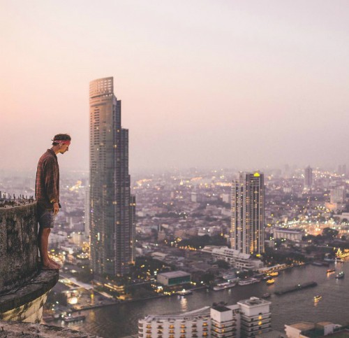 Chàng trai có tên Jack Morris đứng ở mép toà nhà cao tầng tại thủ đô Bangkok (Thái Lan) mà không có bất kỳ thiết bị bảo hộ nào.