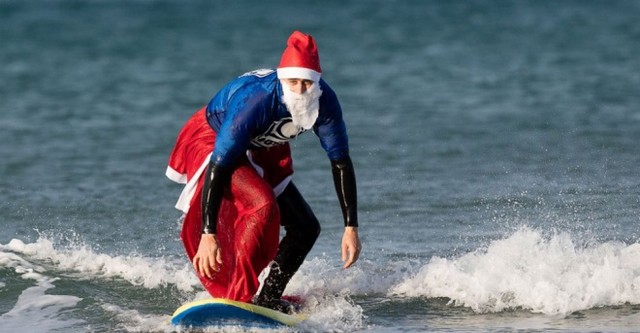 Không chỉ cưỡi xe tuần lộc đi phát quà, ông già Noel ngày nay còn biết đu dây như người nhện, lướt sóng và ngồi trò chuyện cùng các cô gái xinh đẹp.