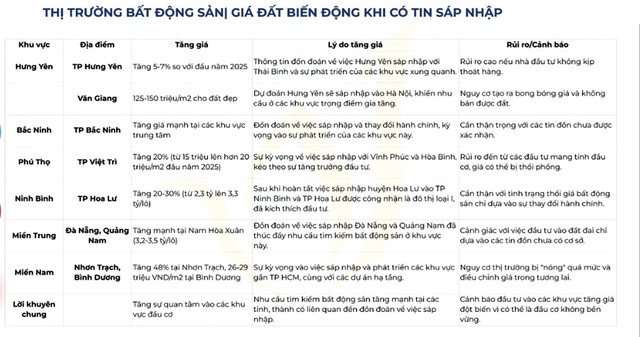Thực tế, từ khi bắt đầu xuất hiện thông tin sáp nhập các tỉnh, thành phố, nhiều địa phương như Vĩnh Phúc, Hưng Yên, Bắc Giang, Hòa Bình, Thái Bình, Ninh Bình, Hà Nam, Hải Dương, Bắc Giang… chứng kiến sự tăng giá rõ rệt của bất động sản nhà ở, nhất là phân khúc đất nền, với mức tăng 30-40% so với trước đó. Tuy vậy, xu hướng này không duy trì lâu và hoạt động giao dịch không nhiều.