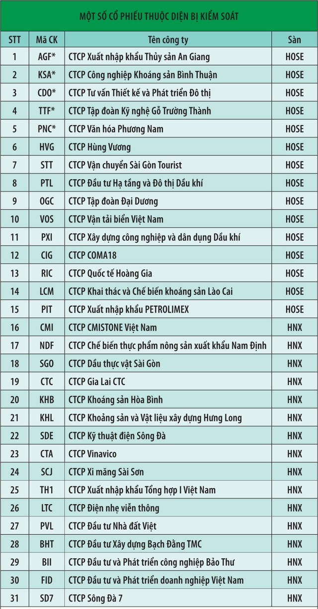* Cổ phiếu bị kiểm soát đặc biệt.