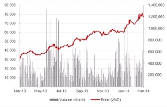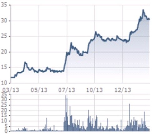 Công ty này đang thể hiện một nền tảng tăng trưởng cực tốt, tài chính lành mạnh và định giá hợp lý ở mức PE 9.4 lần so với mức thu nhập dự báo 2014.