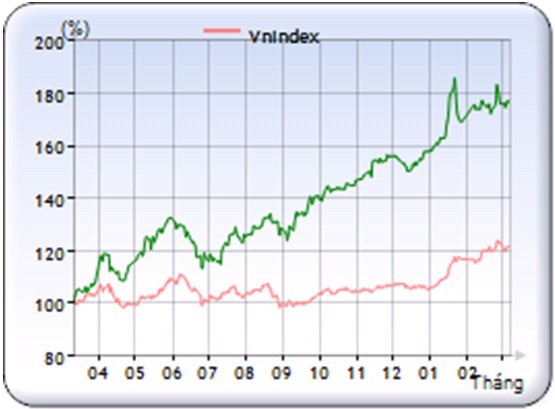 So sánh tăng trưởng của HPG với VN-Index