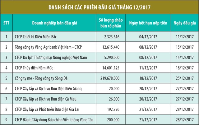 Theo dự kiến, từ nay đến hết năm 2017, thị trường chứng khoán dự kiến sẽ đón thêm khoảng 20 cuộc bán vốn tại hai sở giao dịch chứng khoán, đáng chú ý trong đó có đợt bán 343.662.587 cổ phần của Nhà nước tại Sabeco và đợt bán vốn của SCIC tại một loạt doanh nghiệp như DCM, FPT, NTP, BMP...