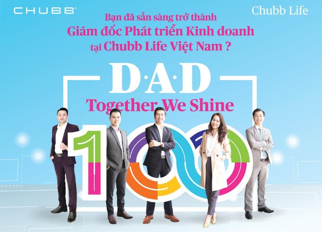 Bên cạnh đó, trong thế giới không ngừng chuyển động và đổi mới, chúng tôi đang triển khai dự án “trẻ hóa” với chính sách DAD100 - 100 Director of Agency Development (Giám đốc Phát triển kinh doanh) để dẫn dắt thế hệ trẻ thành những người lãnh đạo mới trong tương lai. DAD100 chính là cơ hội rộng mở cho những nhân tố mới đến với Chubb Life Việt Nam, những người luôn tràn đầy nhiệt huyết, hoài bão, sáng kiến, sẵn sàng đón nhận thách thức, truyền cảm hứng và dẫn dắt người khác trở thành lãnh đạo thế hệ tiếp nối. Vì tôi quan niệm rằng một người lãnh đạo thành công là phải đào tạo ra được người lãnh đạo khác và người đó có thể tự lãnh đạo bản thân mình.