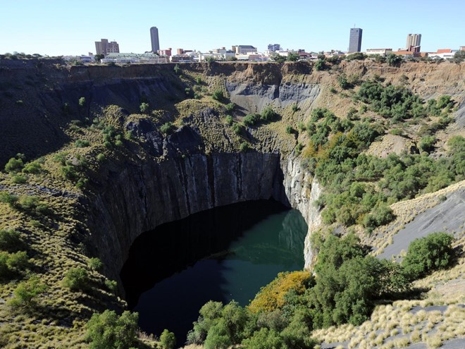 Nhiều dự án khai khoáng lớn cũng để lại những hố lớn trên mặt đất. Hố kim cương Kimberley ở Nam Phi có chu vi tới 1,6 km, và diện tích gần 17 ha. Ảnh: Getty.