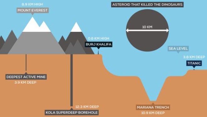 Trên đất liền, hố sâu nhất từng được con người khoan xuống nằm ở bán đảo Kola, Nga. Với độ sâu hơn 12 km, nếu có rơi xuống cái hố này bạn cũng phải mất khoảng 4 phút mới chạm đến đáy. Nhiều người dân sống xung quanh còn cho biết họ có thể nghe những tiếng hét như ở địa ngục từ phía chiếc hố. Ảnh: Bored Therapy.