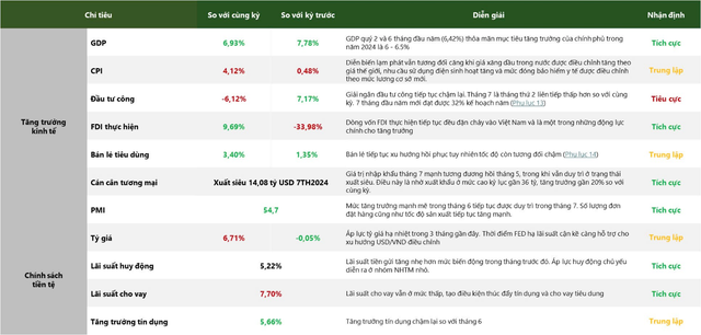 Như bảng trên, các chỉ tiêu vĩ mô Việt Nam đa số ở mức trung lập đến tích cực. Cùng với đó, chúng tôi đánh giá bối cảnh liên thị trường không xấu, chu kỳ chỉ số đang ở giai đoạn tích cực, và tăng trưởng lợi nhuận quý 2 của các doanh nghiệp trên sàn đang đạt mức kỳ vọng của nhà đầu tư.