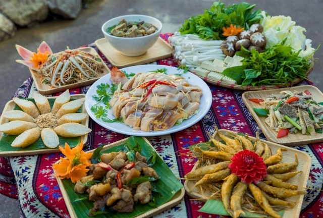Chuyến đi của du khách sẽ không thể trọn vẹn nếu thiếu đi trải nghiệm ẩm thực tối tại Bản Mây. Đặc sản của các dân tộc ngon nhất khi được thưởng thức trong không gian lũy tre, nhà sàn và tường đá đặc trưng của bản làng. Hấp dẫn nhất là khi ngồi bên ánh lửa trại bập bùng, cùng tiếng cười nói rộn ràng của bạn bè và người thân.