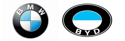 Ngay cả logo cũng bị sao chép, và logo của BMW đã bị BYD sao chép lại. Mặc dù đã có chỉnh sửa, nhưng rõ ràng BYD đã nhận được cảm hứng cho phông chữ, màu sắc, hình dạng và cách bố trí của logo. BMN -một thương hiệu quần áo Trung Quốc cũng sao chép logo của BMW và phải đối mặt với hành động pháp lý từ hãng này.