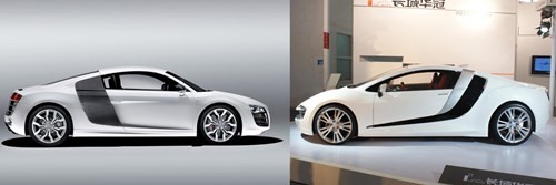 Thiết kế phần thân đặc trưng của Audi R8 đã lọt vào tầm mắt của hãng xe Trung Quốc CH Auto. Khi hãng quyết định sao chép thiết kế này cho chiếc siêu xe điện Lithia của họ. Phía trước và phía sau không giống lắm, cả hai đều có nét đặc trưng và cuốn hút riêng, nhưng phần thân R8 thì không thể nhầm lẫn.