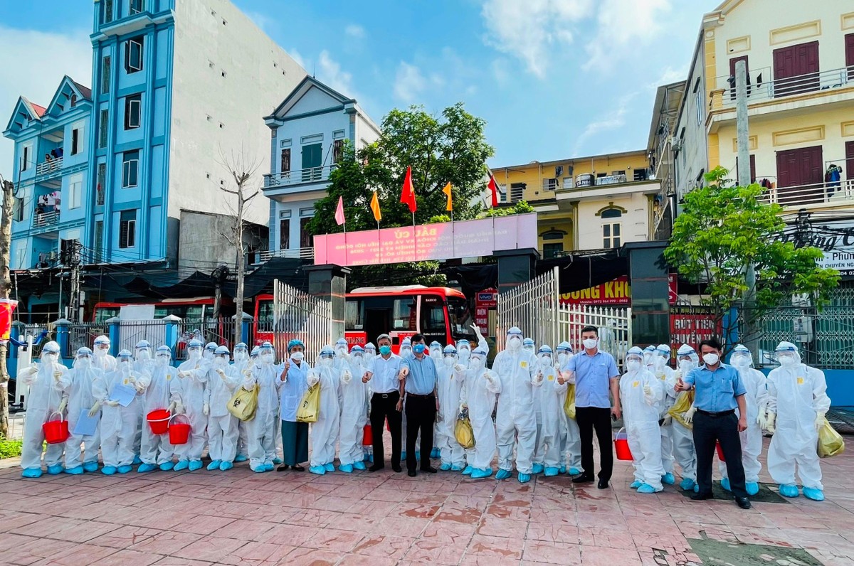 Các cán bộ Bộ phận thường trực đặc biệt của Bộ Y tế chụp ảnh cùng các y, bác sĩ đang làm nhiệm vụ chống dịch tại Bắc Giang |