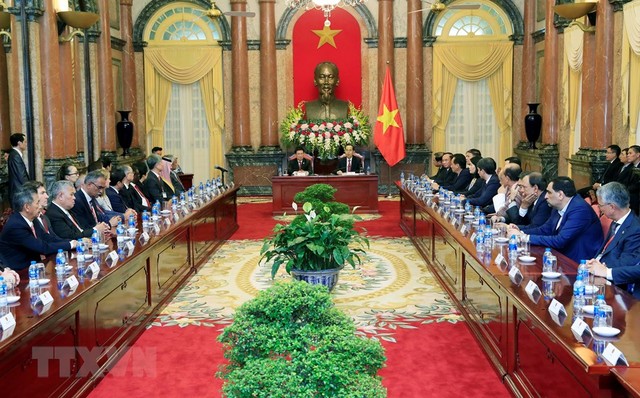 Chiều 19/9/2018, tại Phủ Chủ tịch, Chủ tịch nước Trần Đại Quang tiếp Trưởng đoàn các Cơ quan Kiểm toán tối cao châu Á nhân dịp tham dự Đại hội Tổ chức các Cơ quan Kiểm toán tối cao châu Á (ASOSAI) lần thứ 14. (Ảnh: TTXVN)
