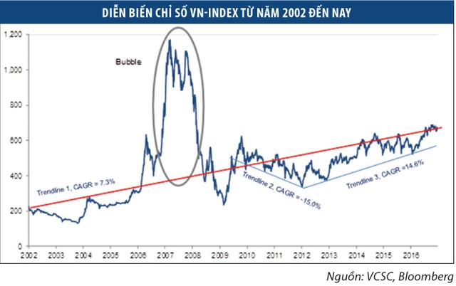 Chỉ số VN-Index dù bị ảnh hưởng bởi những sự kiện quốc tế như giá dầu biến động mạnh, Anh quyết định rời khỏi Liên minh châu Âu (Brexit), Cục Dự trữ Liên bang Mỹ (Fed) tăng lãi suất, hay tương lai Hiệp định Xuyên Thái Bình Dương (TPP) chưa rõ ràng, nhưng kết thúc năm 2016 với đà tăng vững chắc.