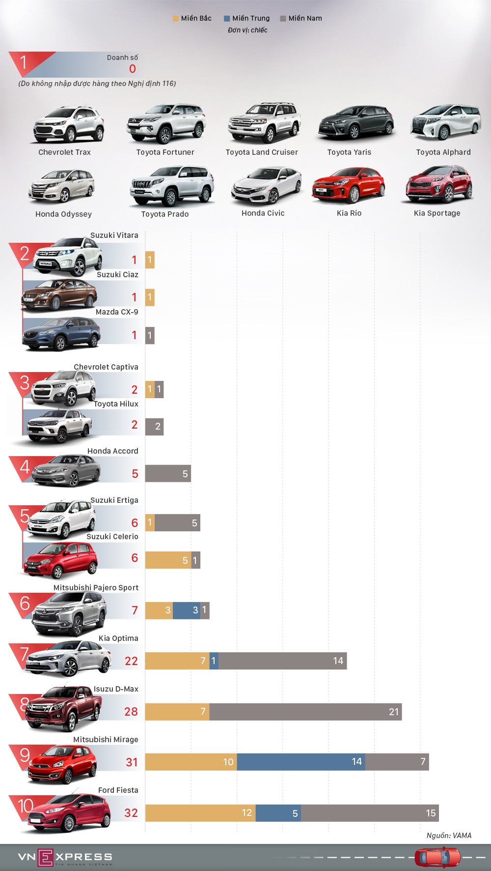 Những ôtô bán ít nhất tháng 3 tại Việt Nam