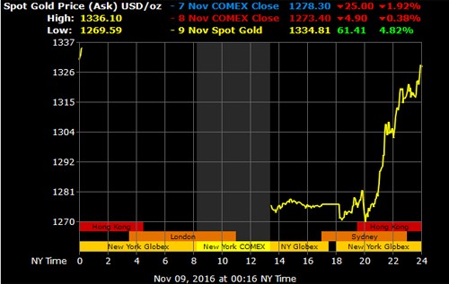 Sau cú sốc Brexit, nhà đầu tư lại chuyển hướng quan tâm sang cuộc bầu cử Tổng thống Mỹ. Chiến thắng bất ngờ của ông Trump đã khiến tài chính thế giới chao đảo.