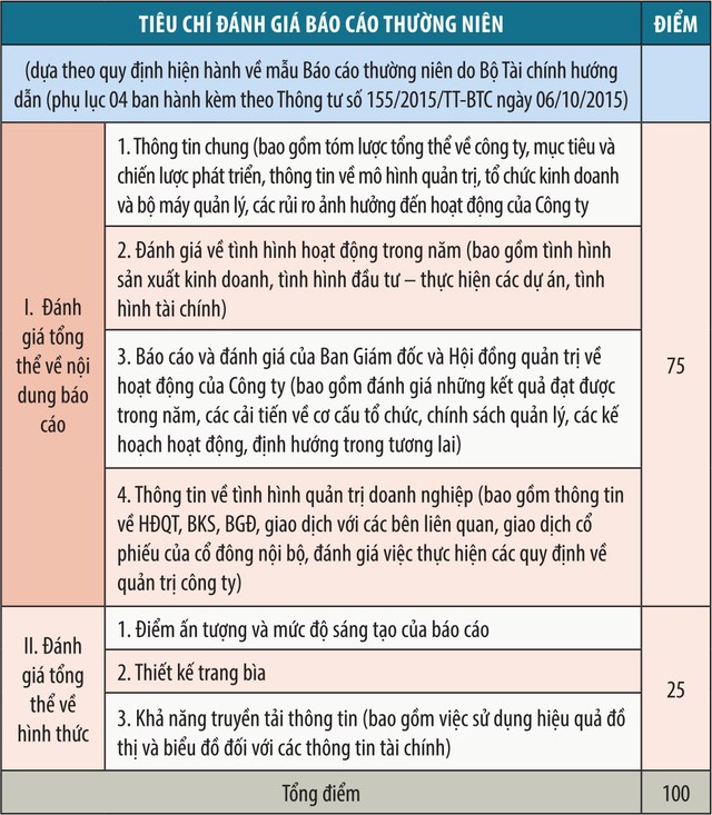 Cuộc bình chọn năm 2018 có 3 điểm mới nổi bật. Thứ nhất, bên cạnh nội dung đánh giá Báo cáo thường niên (BCTN) và Báo cáo Phát triển bền vững của doanh nghiệp niêm yết trên thị trường chứng khoán Việt Nam, Cuộc bình chọn năm nay thực hiện đánh giá sâu hơn tình hình thực thi quản trị công ty (QTCT) của doanh nghiệp với một bộ tiêu chí riêng, qua đó khuyến khích áp dụng các tiêu chuẩn và thông lệ quốc tế về QTCT nhằm hướng doanh nghiệp xây dựng môi trường kinh doanh dựa trên nền tảng phát triển bền vững.