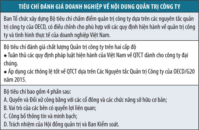 Bộ tiêu chí đánh giá QTCT được Ban tổ chức xây dựng dựa trên nguyên tắc QTCT của OECD, các câu hỏi có điều chỉnh cho phù hợp với các quy định hiện hành về QTCT và tình hình thực tế của doanh nghiệp Việt Nam. Bên thứ ba độc lập được mời thực hiện đánh giá sơ khảo nội dung QTCT.