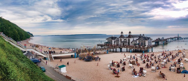 Tàu kiểu cổ, chạy lịch xịch qua những cánh đồng, làng mạc, thị trấn trên đảo Rugen. Điểm đến cổ điển nhất đảo là thành phố Sassnitz. Những ngôi biệt thự cổ xinh đẹp tại đây đã trải qua hàng trăm năm nhưng vẫn tràn đầy sức sống.