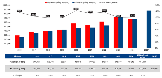 Quay lại với yếu tố cơ bản, theo hình minh họa, năm nay, chính phủ đã tăng chỉ tiêu giải ngân vốn đầu tư công lên rất cao, khoảng 875 nghìn tỷ đồng, trong khi năm 2024 chỉ tiêu chỉ rơi vào khoảng 677 nghìn tỷ đồng. Với việc nợ công vẫn còn thấp so với trần nợ công quy định, cùng với các luật quan trọng như Luật Đầu tư công và Luật PPP đã được thông qua để tháo gỡ rào cản pháp lý cho giải ngân vốn đầu tư công, chúng tôi kỳ vọng mục tiêu này sẽ hoàn thành và 2025 sẽ là một năm có đầy dấu ấn trong mảng này. Với cam kết đẩy mạnh giải ngân, nhóm cổ phiếu hưởng lợi từ đầu tư công được kỳ vọng sẽ dẫn dắt thị trường trong năm nay.