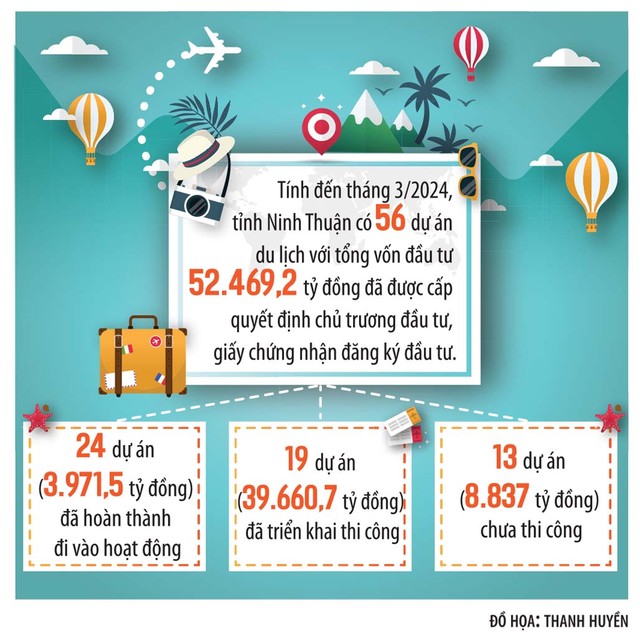 Số liệu từ Sở Kế hoạch và Đầu tư tỉnh Ninh Thuận cho thấy, trong giai đoạn 2021 - 2023, tỉnh này có 23 dự án du lịch với tổng vốn đầu tư 36.908,3 tỷ đồng.