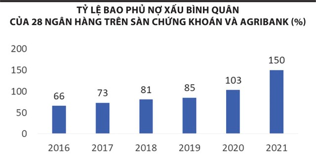 Tỷ lệ bao phủ nợ xấu chỉ được tính toán với các khoản nợ xấu nội bảng, mà chưa tính đến các khoản nợ xấu bán cho VAMC chưa được xử lý và các khoản nợ xấu tiềm ẩn từ nợ tái cơ cấu.