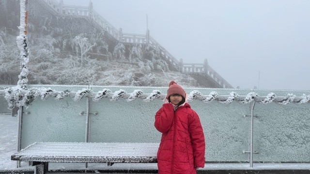 Cảnh tượng ngoạn mục khi cả không gian rộng lớn của nóc nhà Đông Dương chìm trong lớp tuyết trắng khiến nhiều du khách không khỏi xuýt xoa, trầm trồ. Tuyết phủ lên Đại tượng Phật A Di Đà và lắng đọng trên quần thể tâm linh Fansipan, khiến khung cảnh vốn đã tuyệt đẹp này càng trở nên huyền ảo, mơ màng như chốn bồng lai tiên cảnh.