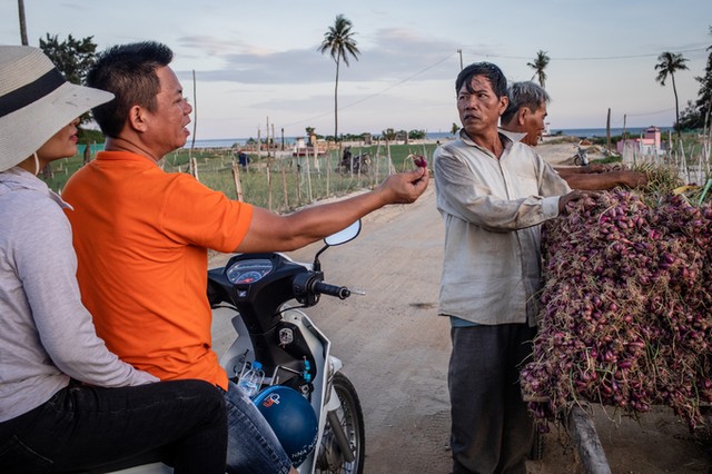 Chiều muộn, vợ chồng ông Trần Thịnh tới tận ruộng của ông Phạm Duy Khương (xã An Hải) để hỏi mua hành. "Tôi nghe danh tiếng hành tỏi Lý Sơn đã lâu rồi, nên chuyến này tham quan đảo, vợ chồng tôi phải trực tiếp tới ruộng mua mới an tâm", du khách đến từ Hà Nội nói.