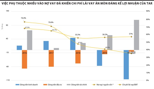 Dù tỷ lệ nợ vay/EBIT (lợi nhuận trước thuế và lãi vay) của Trung An trong những năm qua đang có xu hướng giảm từ hơn 70% trong giai đoạn 2016 - 2017 giảm xuống gần 50% của 2018, hơn 40% của 2019 và 35% trong 9 tháng đầu năm nay, có thể thấy đây vẫn là tỷ lệ cao và ăn mòn đáng kể lợi nhuận từ hoạt động kinh doanh.