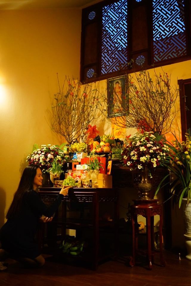 Đã 20 năm bà Trà My được tự mình sửa soạn, bày biện bàn thờ của gia đình nhỏ của mình. “Khoái lắm, có vẻ như tôi đã ảnh hưởng không ít truyền thống của gia đình, sự đam mê này từ bà nội”, bà hồ hởi.