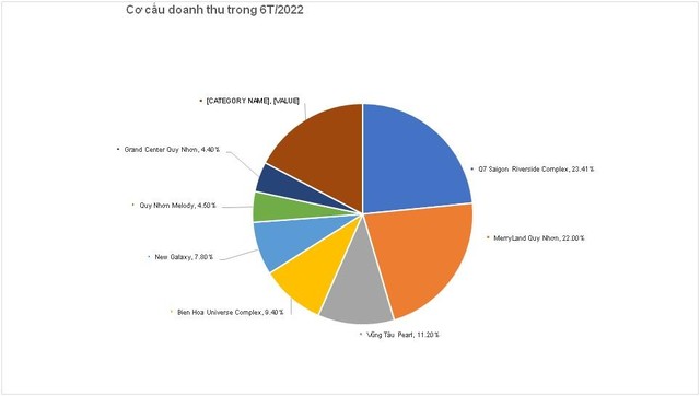 Đóng góp lớn vào cơ cấu doanh thu xây dựng 6 tháng đầu năm 2022 là các dự án Q7 Saigon Riverside Complex (23,41%), MerryLand Quy Nhơn (22%), Vũng Tàu Pearl (11,2%) Bien Hoa Universe Complex (9,4%), New Galaxy (7,8%), Quy Nhơn Melody (4,5%), Grand Center Quy Nhơn (4,4%)…