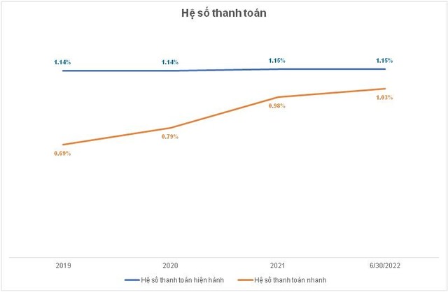 Ngoài ra, để đảm bảo vốn lưu động cho hoạt động kinh doanh, Công ty cũng chủ động tăng các khoản vay ngắn hạn từ ngân hàng song vẫn đảm bảo các chỉ số thanh toán của doanh nghiệp. Chỉ số thanh toán hiện thời và thanh toán nhanh được giữ ổn định ở mức 1,15 lần và 1,03 lần, so với mức 1,15 và 0,98 của năm 2021.