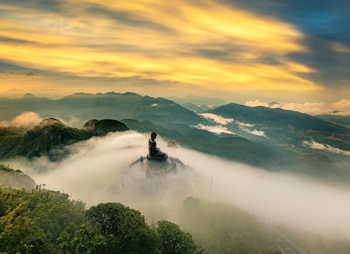 Trong khung cảnh thiên nhiên ngoạn mục của nóc nhà Đông Dương, bức tượng Phật uy nghi, hoành tráng trên đỉnh cao ẩn hiện trong biển mây huyền ảo và bốn bề màu xanh của trùng điệp núi rừng, tạo nên một bức tranh đẹp siêu thực của miền đất Phật và một không gian linh thiêng, thanh tịnh cho tâm hồn những du khách có dịp ghé chân.