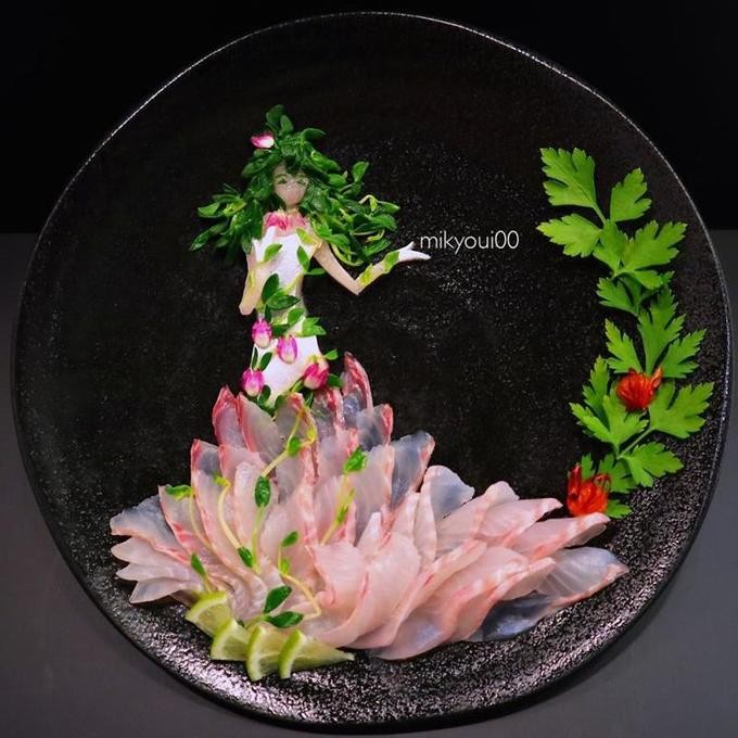Ông bố Mikyoui với nickname Mikyoui00 nổi tiếng khắp mạng xã hội Nhật Bản bởi những đĩa đồ ăn sashimi đẹp như tranh vẽ. Anh đã biến món ăn truyền thống thành một tác phẩm nghệ thuật độc đáo.