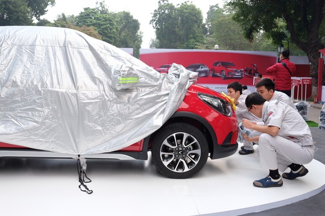 Mẫu hatchback cỡ A của VinFast được đưa tới Công viên Thống Nhất (Hà Nội), chuẩn bị ra mắt chiều nay (20/11).