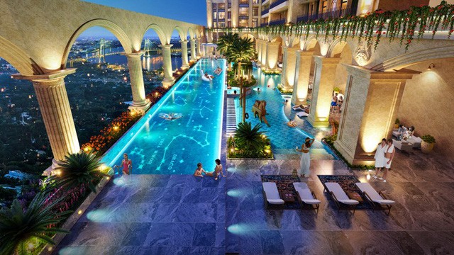 Chưa kể, khối tiện ích đồ sộ với hồ bơi vô cực nước mặn tràn bờ rộng 1,100 m2 bồng bềnh tại tầng 6 lần đầu tiên xuất hiện tại Quận 2, vườn La Mã, vườn cảnh quan cùng tổ hợp 16 tiện ích khác cũng chiếm một khoản kinh phí khá lớn.