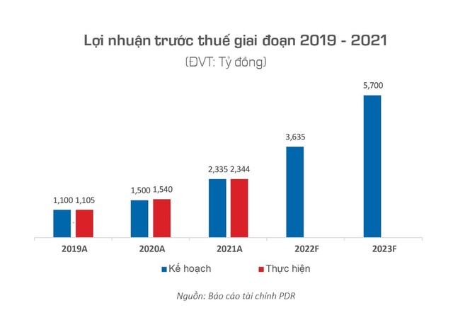 Lợi nhuận trước thuế của PDR liên tục tăng từ 1.105 tỷ đồng (2019) lên 1.540 tỷ đồng (2020) và đạt được 2.344 tỷ đồng (2021). Trong năm 2022, PDR cam kết lợi nhuận trước thuế đạt 3.635 tỷ đồng.