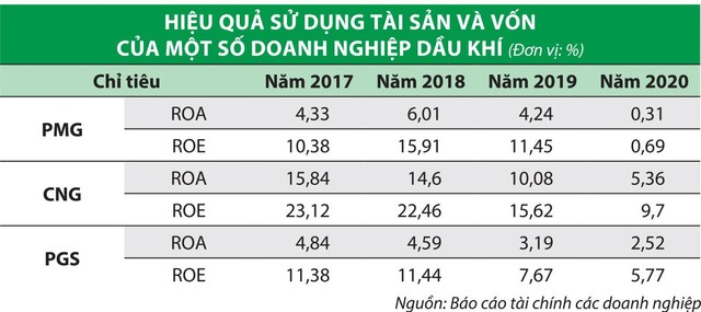 So sánh với một số doanh nghiệp cùng ngành như Công ty cổ phần CNG Việt Nam (CNG), Công ty cổ phần Kinh doanh khí Miền Nam (PGS), về hiệu quả sử dụng tài sản và vốn chủ sở hữu của PMG đều thấp hơn đáng kể.