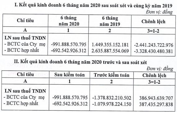 Cụ thể, tại Báo cáo tài chính của Công ty mẹ, lợi nhuận sau thuế sau kiểm toán ghi nhận mức âm 991,89 tỷ đồng, giảm 386,94 tỷ đồng so với mức âm hơn 1.378,83 tỷ đồng trước kiểm toán. Còn tại Báo cáo tài chính hợp nhất, lợi nhuận sau thuế của giảm số lỗ từ gần 1.080 tỷ đồng xuống còn 692,54 tỷ đồng, tương ứng giảm 387,44 tỷ đồng.