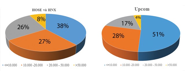 Cụ thể, trong số 810 loại cổ phiếu đang đăng ký giao dịch, 413 loại cổ phiếu (chiếm 51%) đang giao dịch từ mệnh giá trở xuống. Trong đó, có 152 mã giao dịch dưới 5.000 đồng/cổ phiếu, 42 mã giao dịch dưới 1.000 đồng/cổ phiếu. Như vậy, trong tổng số 1.566 cổ phiếu đang giao dịch trên 3 sàn chứng khoán Việt Nam, gần phân nửa đang giao dịch không quá mệnh giá.