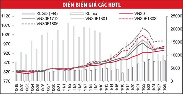 Thống kê tại Sở Giao dịch chứng khoán Hà Nội cho biết, tính đến cuối tháng 10, đã có 11.444 tài khoản giao dịch phái sinh được mở. Nhà đầu tư nước ngoài có  131 hợp đồng mua (giá trị 10,69 tỷ đồng) và 120 hợp đồng bán (giá trị 9,78 tỷ đồng).
