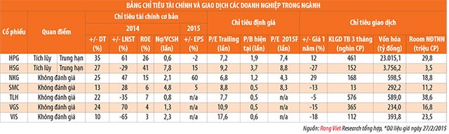 Trong khi đó, Rồng Việt Research lo ngại giá bán thép trong nước phải giảm nhiều hơn do sức ép từ cạnh tranh. Ngoài ra, trong tháng 3/2015, giá điện điều chỉnh tăng 7,5%, đây là áp lực về chi phí đối với các doanh nghiệp trong ngành thép, do tiêu thụ nhiều điện năng.
