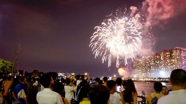Hàng ngàn người dân Sài Gòn có mặt tại khu Toà nhà Landmark 81 ven sông Sài Gòn đã trầm trồ, vỗ tay khi chiêm ngưỡng màn bắn pháo hoa kỷ niệm 44 giải phóng miền Nam thống nhất đất nước.